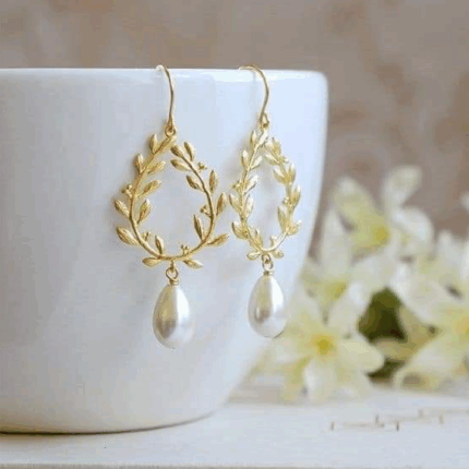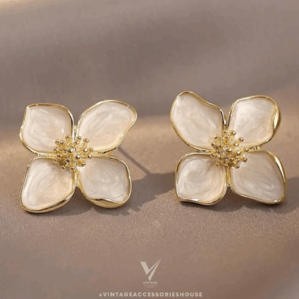 These are elegant butterfly-shaped earrings with gold-toned petals accented by sparkling crystals. Their soft pearly details give them a delicate, luxurious look.