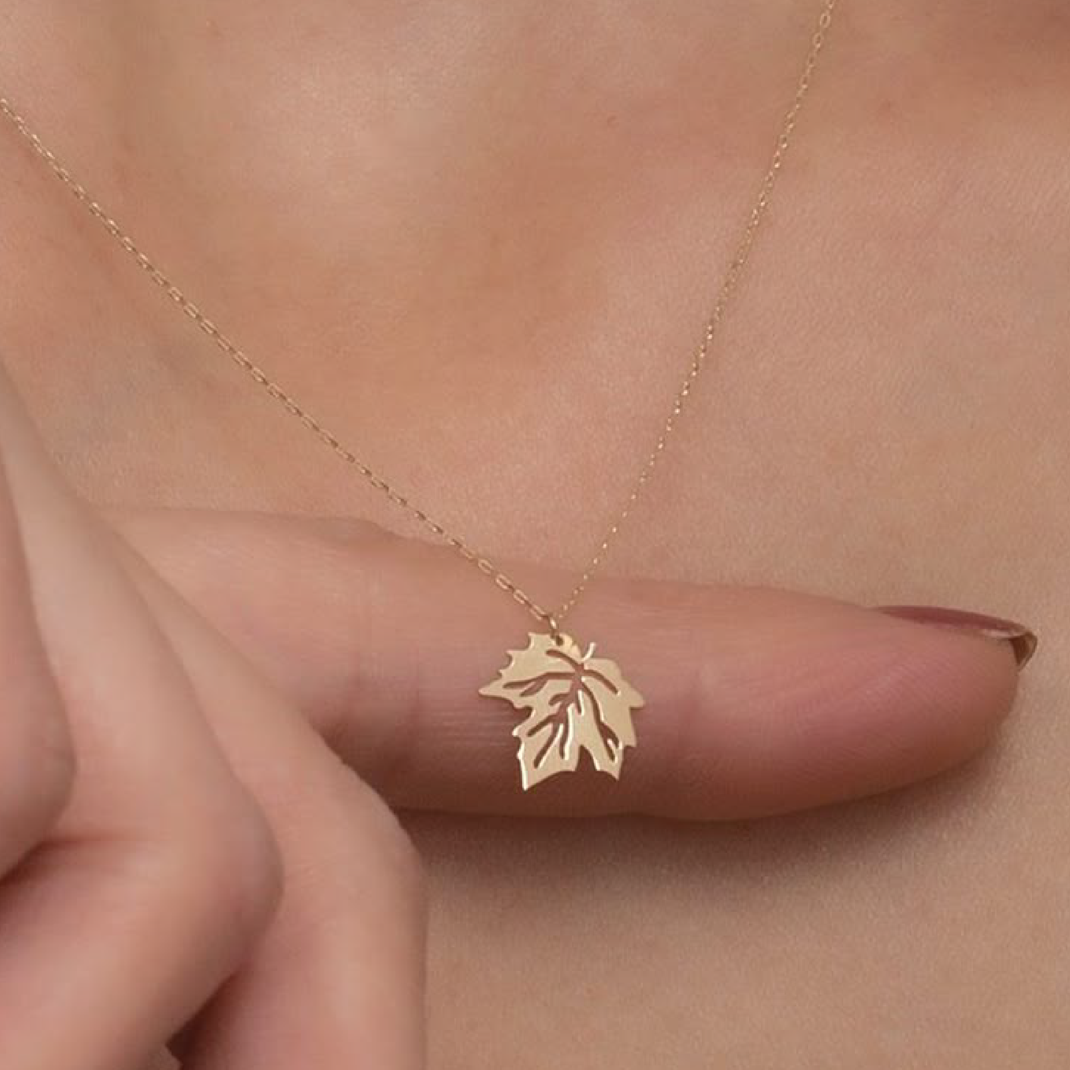 This delicate tiny maple leaf necklace features a beautifully crafted solid gold chain, offering a subtle yet elegant nature-inspired design. Perfect for adding a touch of warmth and sophistication to any outfit